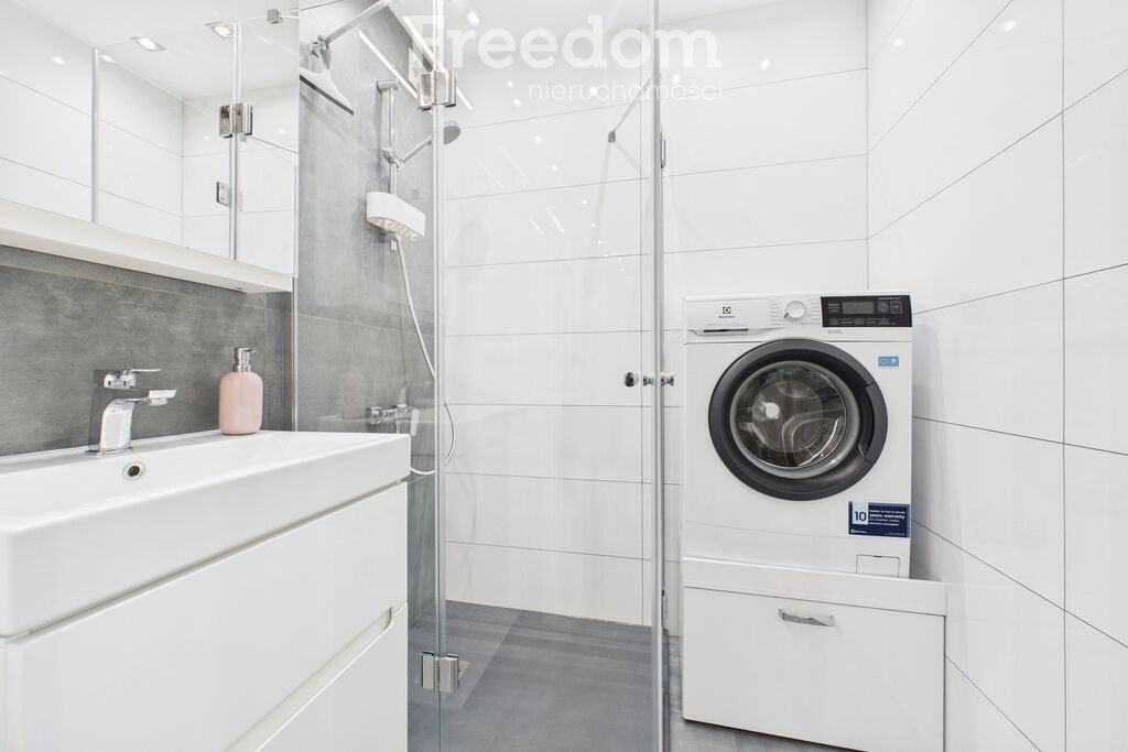 szafkami i pralką, a obok osobne WC (0.7m2). Po prawej przestronny