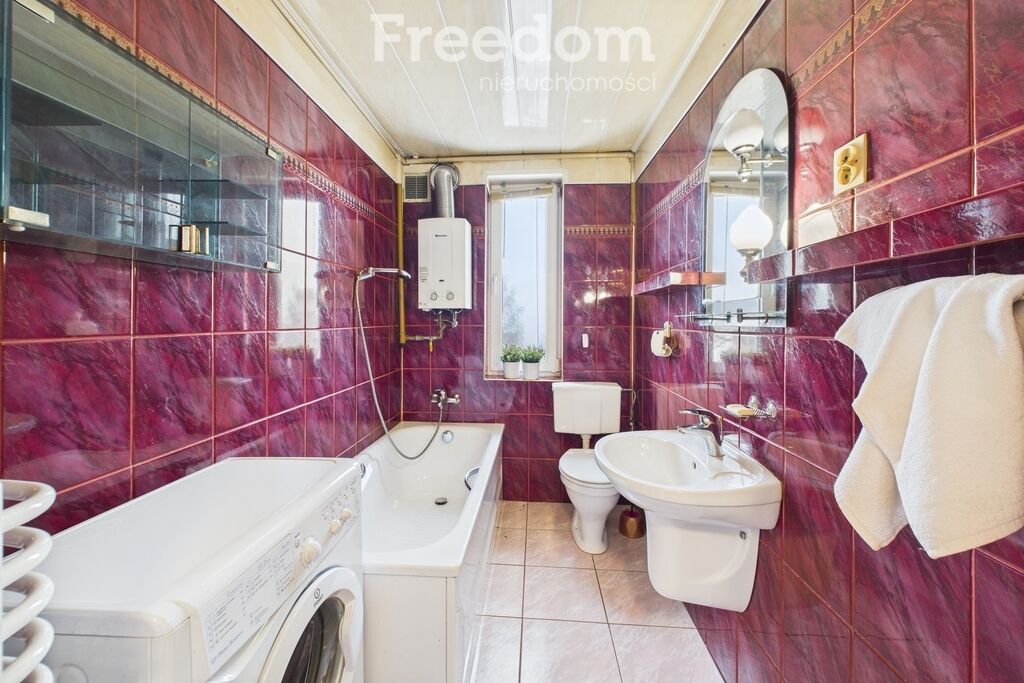 a po prawej łazienka (3,98 m2), mieszcząca wannę oraz pralkę. Obok