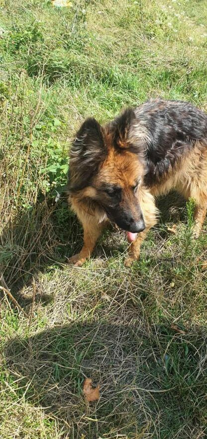 Fado to młody owczarek pogodny pragnący przyjaciela kompana na spacery i domku na zawsze.Ktoś kiedyś go skrzywdził i to bardzo był chudy głodny. Na szyli miał długim prawie 4 metrowym krowim łańcuchem.